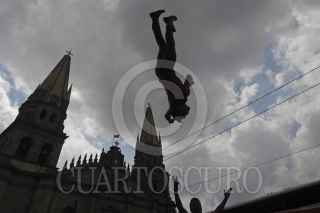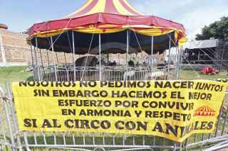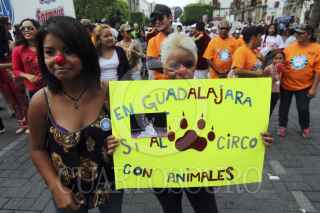 GUADALAJARA, JALISCO, 11SEPTIEBRE2014.- Trabajadores y administradores de varios circos marcharon por las principales calles y avenidas del centro de la ciudad hasta llegar a Palacio Municipal y Congreso del Estado, esto tras la aprobación del nuevo ordenamiento del articulo 113 del reglamento de espectáculos del municipio de Guadalajara, que prohíbe espectáculos que ofrezcan la explotación y exhibición de animales de cualquier tipo de su especie. FOTO: FERNANDO CARRANZA GARCIA/CUARTOSCURO.COM
