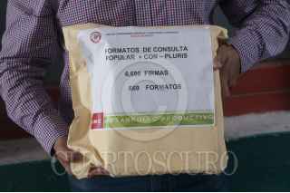 MÉXICO, D.F., 12SEPTIEMBRE2014.- La Cámara Nacional Campesina organizó una recolección de firmas de varios estados del país en el marco de la campaña "Más con menos Pluris" con la finalidad de que se realice en el país una consulta popular ciudadana para disminuir de 200 a 100 las diputaciones federales plurinominales, así como 32 senadurías con esa denominación. FOTO: DIEGO SIMÓN SÁNCHEZ /CUARTOSCURO.COM
