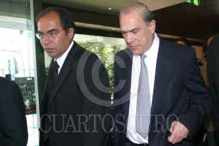 MÉXICO, D.F. 10FEBRERO2006.- Saúl Juárez,Director del Insituto Nacional de Bellas Artes y Jose Angel Gurría, Presidente de la OCDE asistieron a una conocida agencia funeraria del centro de la Ciudad, donde fueron llevados los restos del artista plastico Juan Soriano. FOTO:Miriam Sánchez/CUARTOSCURO.COM