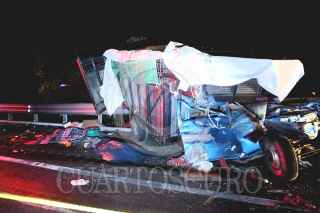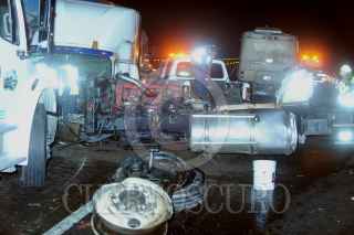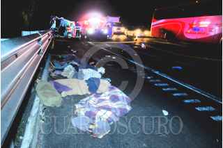 TEXMELUCAN, PUEBLA, 13SEPTIEMBRE2014 7 personas perdieron la vida, entre estos dos menores de edad, tras el accidente múltiple que se registro entre dos autobuses, una camioneta de 31/2 Tns. y un tráiler de doble remolque, en el Km. 74+800 de la Autopista México Puebla, perímetro de Texmelucan Puebla. Dicha carretera, quedo cerrada con dirección Puebla por aproximadamente 5 horas provocando un fuerte caos vial. FOTO: LUIS CARBAYO /CUARTOSCURO.COM