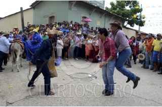 OMETEPEC, GUERRERO, 13SEPTIEMBRE2014.-Pobladores de la cabecera municipal de Ometepec en la Costa Chica de Guerrero celebraron su fiesta patronal en honor a San Nicolás Tolentino, imagen de la religión católica venerada por más de 70 años. En la fiesta la danza del Toro del Petate con su personaje el Terrón que son el atractivo de la festividad. Por más de doce horas danzan recorriendo las calles entre el tumulto. FOTO: BERNANDINO HERNÁNDEZ /CUARTOSCURO.COM