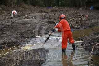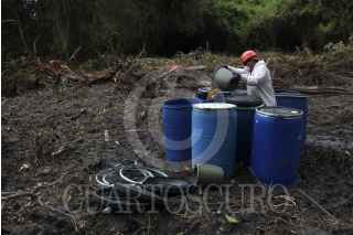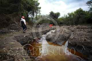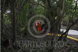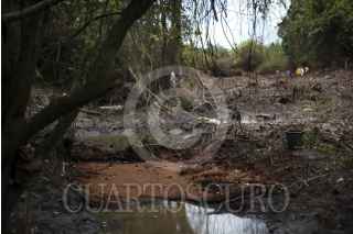 TIERRA BLANCA, VERACRUZ, 13SEPTIEMBRE204.- A dos semanas del derrame de gasolina premium en el Río Hondo, la dimensión del daño ecológico en la riviera exhibe severas consecuencias como la resequedad de árboles, plantas afectadas, nula fauna y el transpirar de combustible en la tierra, mismo que fue almacenado en una zanja y arrastrado de nueva cuenta al río debido a las fuertes lluvias. FOTO: FÉLIX MÁRQUEZ /CUARTOSCURO.COM