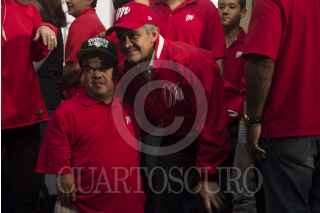 MÉXICO, D.F., 13SEPTIEMBRE2014.- El jefe de gobierno de la Ciudad de México Miguel Ángel Mancera recibió y felicitó a los integrantes del equipo de béisbol de la ciudad de México Los Diablos Rojos del México por su campeonato en la liga de béisbol mexicana. FOTO: ISABEL MATEOS /CUARTOSCURO.COM