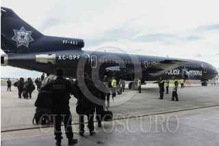 MEXICO, D.F., 16SEPTIEMBRE2014.- Un avión Boeing 727 de la Policía Federal, partió con rumbo a Los Cabos, Baja California Sur, con la instrucción de sumarse a las labores de apoyo a las personas afectadas por el paso del huracán "Odile". FOTO: CUARTOSCURO.COM