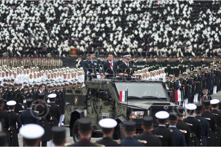 MÉXICO, D.F.,16SEPTIEMBRE2014.- Silvano Aureoles Conejo, presidente de la Cámara de Diputados; Enrique Peña Nieto, presidente de México; Angélica Rivera de Peña; Francisco Vidal Soberón, Secretario de Marina Armada de México; y Luis Barbosa Huerta, presidente del Senado de la República; durante el desfile cívico militar conmemorativo a la independencia de México. FOTO: IVÁN STEPHENS /CUARTOSCURO.COM