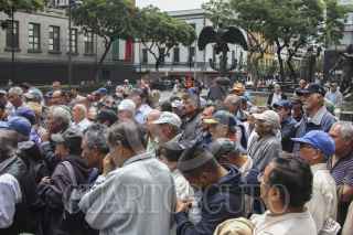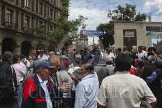 MÉXICO, D.F., 17SEPTIEMBRE2014.- Ex trabajadores de la extinta Ruta 100 se manifestaron a las afueras de las instalaciones del gobierno del Distrito Federal para pedir una audiencia con el Secretario de Gobierno para les indemnicen por sus años de trabajo. FOTO: SAÚL LÓPEZ /CUARTOSCURO.COM