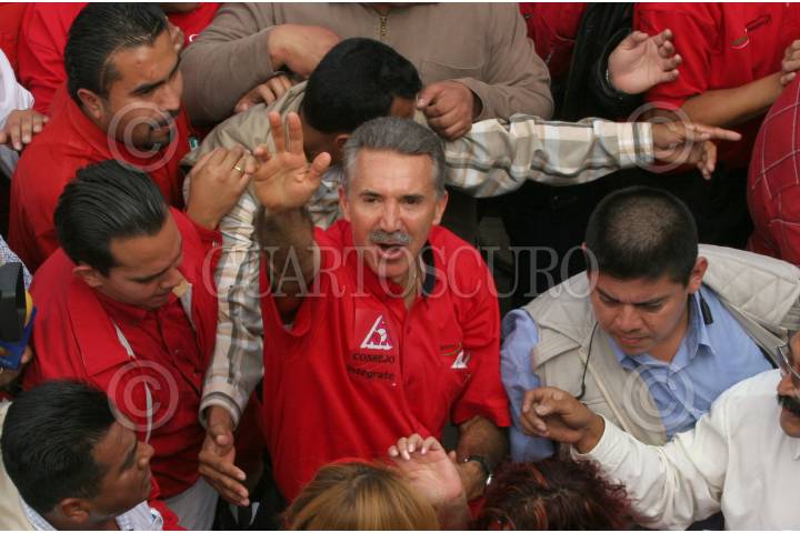 CIUDAD NEZAHUALCOYOTL, EDO. MEX. 11FEBRERO2006.- El candidato de presidencial de la Alianza por México, Roberto Madrazo al termino del mitin con simpatizantes que encabezó en el centro de Ciudad Nezahualcoyotl. FOTO: Miguel Dimayuga/CUARTOSCURO.COM