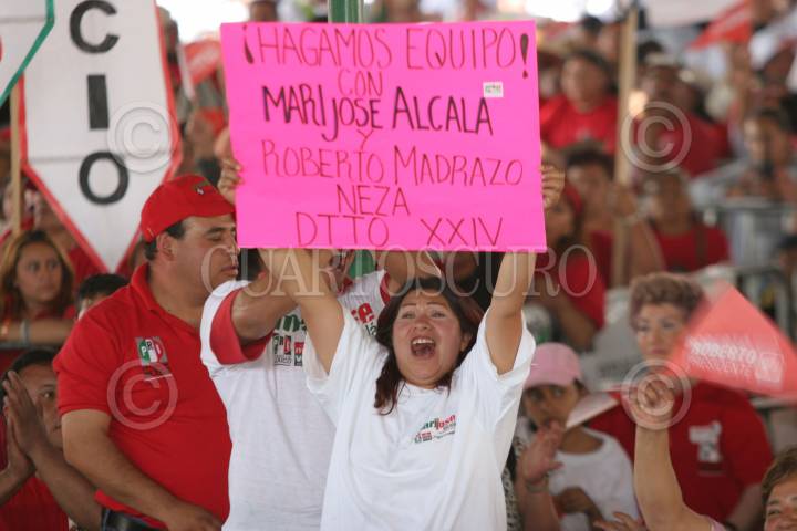 CIUDAD NEZAHUALCOYOTL, EDO. MEX. 11FEBRERO2006.- El candidato de presidencial de la Alianza por México, Roberto Madrazo al termino del mitin con simpatizantes que encabezó en el centro de Ciudad Nezahualcoyotl. FOTO: Miguel Dimayuga/CUARTOSCURO.COM