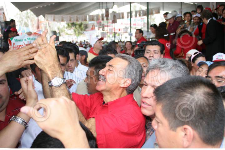 CIUDAD NEZAHUALCOYOTL, EDO. MEX. 11FEBRERO2006.- El candidato de presidencial de la Alianza por México, Roberto Madrazo al termino del mitin con simpatizantes que encabezó en el centro de Ciudad Nezahualcoyotl. FOTO: Miguel Dimayuga/CUARTOSCURO.COM
