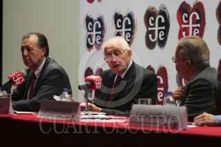 MÉXICO, D.F., 17SEPTIEMBRE2014.- Luis H. Álvarez, fundador del Partido Acción Nacional (PAN), durante la presentación del libro publicado por el Fondo de Cultura Económica y la Fundación Preciado Hernández, "La política: júbilo y esperanza", que reúne la correspondencia entre Manuel Gómez Morin y Luis H. Álvarez. En la imagen, Ernesto Cordero, senador por el PAN. FOTO: ADOLFO VLADIMIR /CUARTOSCURO.COM