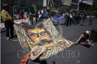 MÉXICO, D.F., 18SEPTIEMBRE2014.- Pobladores de San Salvador Atenco marcharon del Ángel de la Independencia al Tribunal Agrario en protesta por la construcción del nuevo Aeropuerto en Texcoco, en el cual terminaron con un mitin. FOTO: ADOLFO VLADIMIR /CUARTOSCURO.COM