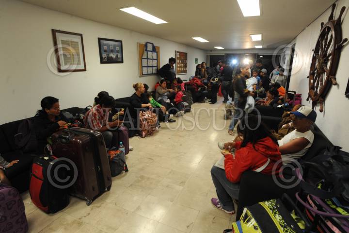 MÉXICO D.F., 19SEPTIEMBRE2014.- Personas afectadas por el huracán Odile que impacto la zona de Baja California, son traídas a la ciudad de México por personal de Marina, en las aeronaves que están formando el puente aéreo entre este lugar y el Distrito Federal. Ya que, indicaron, temen por su seguridad ante los fuertes saqueos que se están registrando en la zona, Turistas locales y extranjeros también son trasladados en estos vuelos. Así mismo, estos aviones regresan a l lugar del desastre, con cientos de toneladas de víveres y medicamentos para ayudar a las personas en los estados de afectación por el meteoro. FOTO: LUIS CARBAYO /CUARTOSCURO.COM