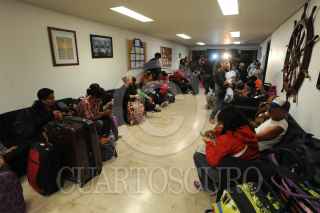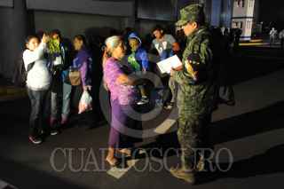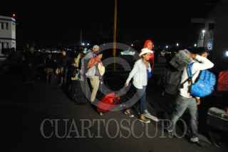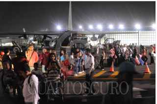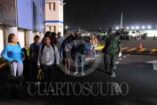 MÉXICO D.F., 19SEPTIEMBRE2014.- Personas afectadas por el huracán Odile que impacto la zona de Baja California, son traídas a la ciudad de México por personal de Marina, en las aeronaves que están formando el puente aéreo entre este lugar y el Distrito Federal. Ya que, indicaron, temen por su seguridad ante los fuertes saqueos que se están registrando en la zona, Turistas locales y extranjeros también son trasladados en estos vuelos. Así mismo, estos aviones regresan a l lugar del desastre, con cientos de toneladas de víveres y medicamentos para ayudar a las personas en los estados de afectación por el meteoro. FOTO: LUIS CARBAYO /CUARTOSCURO.COM