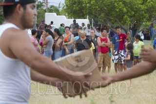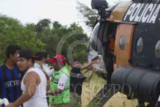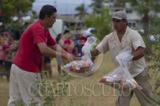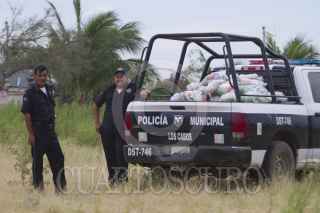 LOS CABOS, BAJA CALIFORNIA SUR 19SEPTIMBRE2014.- Elementos de la Policía Federal acudieron a la comunidad de "La Rivera" para entregar despensas a los pobladores ya que es una de las zonas afectadas tras el paso del huracán Odile. FOTO: GUILLERMO PEREA /CUARTOSCURO.COM