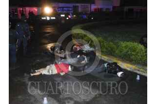 URUAPAN, MICHOACÁN, 19SEPTIEMBRE2014.-La madrugada de este viernes fueron localizados amordazados, maniatados y sin vida, seis hombres en el cruce de las calles Manuel Pérez Coronado y Berlín en la colonia Melchor Ocampo. Una persona logro sobrevivir a pesar de haber presentado varios impactos de bala, ahora se encuentra con atención medica y vigilancia por parte de la Policía Federal. Junto a los cuerpos fue dejado un mensaje firmado por un grupo criminal. FOTO: CUARTOSCURO.COM