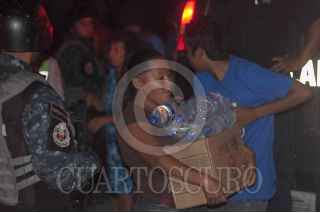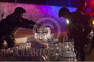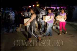 LOS CABOS, BAJA CALIFORNIA SUR 20SEPTIMBRE2014.- Elementos de la Gendarmería acudieron a la colonia Leonardo Gastelum para entregar despensas a los habitantes. Arroz, frijol, lentejas, verduras enlatadas, artículos de limpieza y de higiene personal, son algunos de los artículos que la Cruz Roja ha solicitado para ayudar a los damnificados. Esta colonia es una de las zonas afectadas tras el paso del huracán Odile. FOTO: GUILLERMO PEREA /CUARTOSCURO.COM
