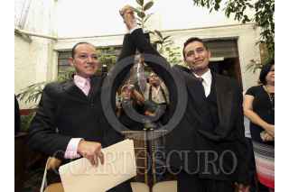 SALTILLO, COAHUILA, 20 SEPTIEMBRE 2014.- Jesús Fernando Cobarruvias Monsiváis y Luis Alberto Reyes Soto, se convirtieron en la primera pareja del mismo sexo en contraer matrimonio igualitario en Coahuila; tras la aprobación de las reformas a los Códigos Civil y Procesal Civil, aprobadas por el Congreso local, las cuales entraron en vigor el pasado primero de septiembre. El enlace tuvo lugar en la Oficialía del Registro Civil Número 2, ubicada en la zona centro de Saltillo. Coahuila es la segunda entidad del país, después del Distrito Federal, que autoriza las bodas entre personas del mismo sexo. FOTO: KARLA ITZEL RUIZ /CUARTOSCURO.COM