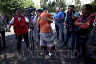 MORELIA, MICHOACÁN, 21SEPTIEMBRE2014.- El Fotoperiodista Raúl López Mendoza del diario Cambio de Michoacán, fue encontrado sin vida la mañana de éste domingo dentro de una vagoneta de su propiedad en la colonia Xangari de esta capital. Estaba desaparecido desde el jueves 18. El Secretario de Seguridad Publica, Carlos Hugo Catellanos, dijo a los medios en la zona del hallazgo que hasta al momento todo indicaba que había muerto por bronco aspiración y que el cuerpo no presentaba huellas de violencia, hecho confirmado por el hijo de López Mendoza, pero que las investigaciones continuarían para dar a conocer las causas de su muerte. FOTO: ALAN ORTEGA /CUARTOSCURO.COM