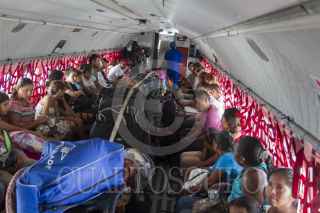 LOS CABOS, BAJA CALIFORNIA SUR, 21SEPTIEMBRE2014.- Damnificados por el paso de huracán Odile, son trasladados al Aeropuerto de Internacional de la Ciudad de México. FOTO: GUILLERMO PEREA /CUARTOSCURO.COM