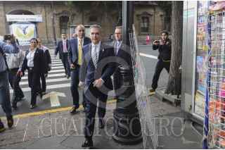 MÉXICO, D.F., 22SEPTIEMBRE2014.- Miguel Ángel Mancera, Jefe de Gobierno Capitalino a su llegada al edificio de gobierno luego de salir de la estación Zócalo. FOTO: ARMANDO MONROY /CUARTOSCURO.COM