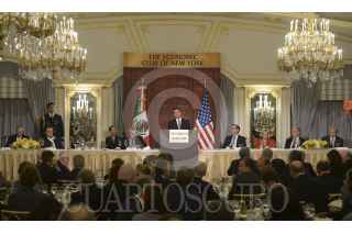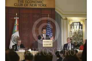 NUEVA YORK, ESTADOS UNIDOS., 22SEPTIEMBRE2014.- Enrique Peña Nieto, presidente de México, durante su participación en el Primer Foro Latinoamericano Bloomberg, que contó también con la participación de los otros Mandatarios integrantes de la Alianza; Michel Bachelet, de Chile; Juan Manuel Santos y Ollanta Humala Tasso, de Colombia y Perú, respectivamente. FOTO: PRESIDENCIA /CUARTOSCURO.COM