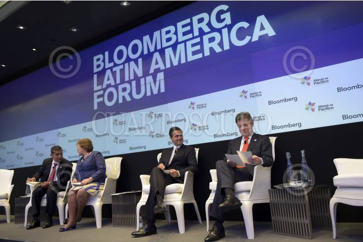 NUEVA YORK, ESTADOS UNIDOS., 22SEPTIEMBRE2014.- Enrique Peña Nieto, presidente de México, durante su participación en el Primer Foro Latinoamericano Bloomberg, que contó también con la participación de los otros Mandatarios integrantes de la Alianza; Michel Bachelet, de Chile; Juan Manuel Santos y Ollanta Humala Tasso, de Colombia y Perú, respectivamente. FOTO: PRESIDENCIA /CUARTOSCURO.COM