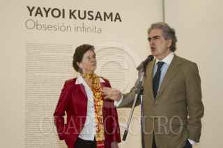 MÉXICO, D.F., 23SEPTIEMBRE2014.- María Cristina García Cepeda, directora del Instituto Nacional de Bellas Artes, Y Rafael Tovar y de Teresa, titular de Conaculta, ofrecieron un recorrido por la exposición Yayoi Kusama, Obsesión Infinita, en el Museo Tamayo Arte Contemporaneo. FOTO: ISAAC ESQUIVEL /CUARTOSCURO.COM