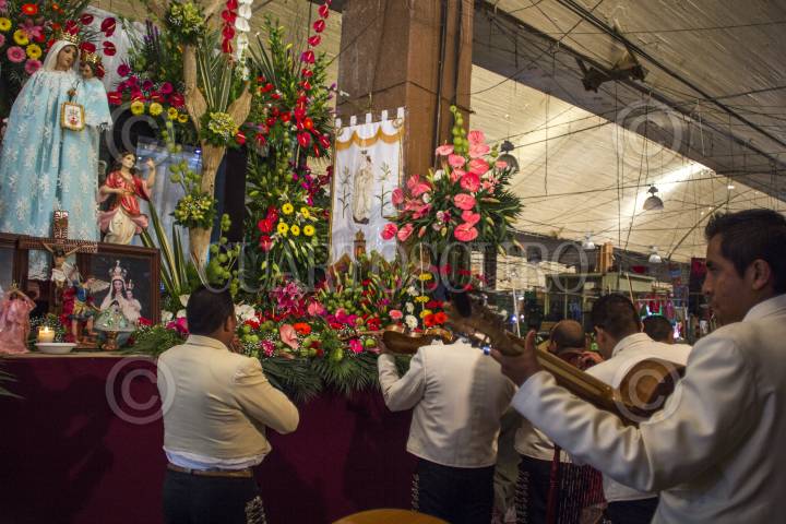 MÉXICO, D.F., 23SEPTIEMBRE2014.- Comerciantes del mercado de la Merced, desde las primeras horas del día, le tocaron las mañanitas y festejaron a la Virgen de la Merced como parte del 57 aniversario del Mercado. FOTO: ENRIQUE ORDÓÑEZ /CUARTOSCURO.COM