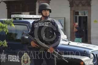 VISTA HERMOSA, MICHOACÁN, 24SEPTIEMBRE2014.- En Michoacán el gobierno federal con su nueva etapa del operativo para combatir el crimen organizado y reforzar la búsqueda de Servando Gómez Martínez, el líder templario apodado La Tuta, envió a la Gendarmería Nacional, corporación creada para contener los delitos de alto impacto. FOTO: JUAN JOSÉ ESTRADA SERAFÍN /CUARTOSCURO.COM