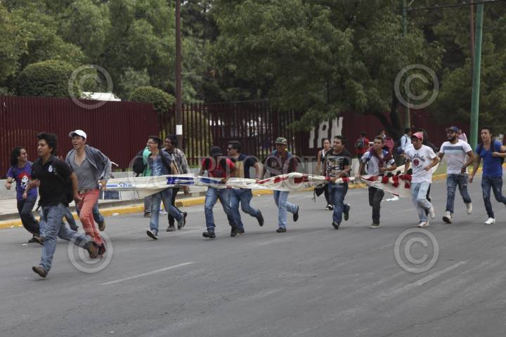 MÉXICO, D.F., 25SEPTIEMBRE2014.- Alumnos de diversos planteles de los Centros de Estudios Científicos y Tecnológicos (CECYT) y plantes de nivel superior realizaron una mega marcha en diversos contingentes que partieron de distintos puntos de la capital hacia las instalaciones del IPN ubicadas en Zacatenco, los estudiantes exigieron la revocación del nuevo plan de estudios del Instituto Politécnico Nacional. FOTO: SAÚL LÓPEZ /CUARTOSCURO.COM