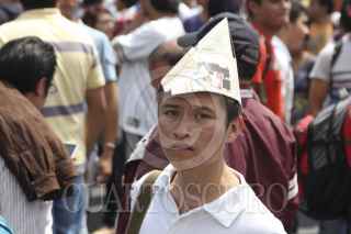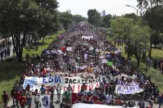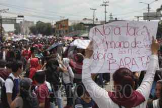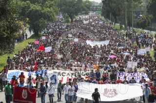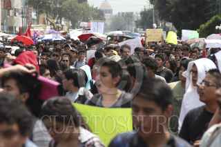 MÉXICO, D.F., 25SEPTIEMBRE2014.- Alumnos de diversos planteles de los Centros de Estudios Científicos y Tecnológicos (CECYT) y plantes de nivel superior realizaron una mega marcha en diversos contingentes que partieron de distintos puntos de la capital hacia las instalaciones del IPN ubicadas en Zacatenco, los estudiantes exigieron la revocación del nuevo plan de estudios del Instituto Politécnico Nacional. FOTO: SAÚL LÓPEZ /CUARTOSCURO.COM