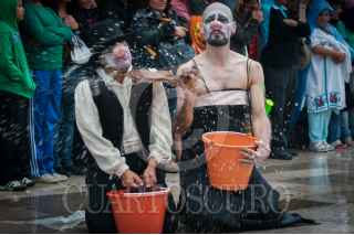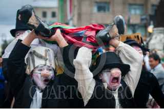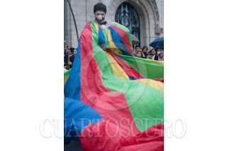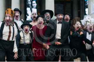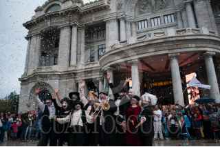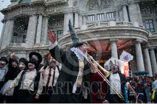 MÉXICO, D.F., 28SEPTIEMBRE2014.- Espectáculo interactivo de circo y humor blanco actuado por un grupo de clown en la explanada del Palacio de Bellas Artes como parte de las actividades para conmemorar el 80 aniversario de dicho recinto cultural. FOTO: DIEGO SIMÓN SÁNCHEZ /CUARTOSCURO.COM