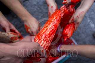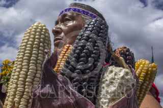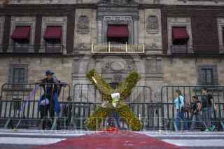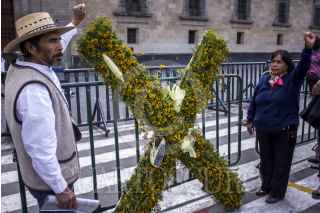 MÉXICO, D.F., 29SEPTIEMBRE2014.- Integrantes de diversas organizaciones, se manifestaron frente a Palacio Nacional al celebrarse el Día Nacional del Maíz. En el lugar colocaron una cruz en forma de protesta ante la falta de apoyo por parte del Gobierno Federal FOTO: ENRIQUE ORDÓÑEZ /CUARTOSCURO.COM