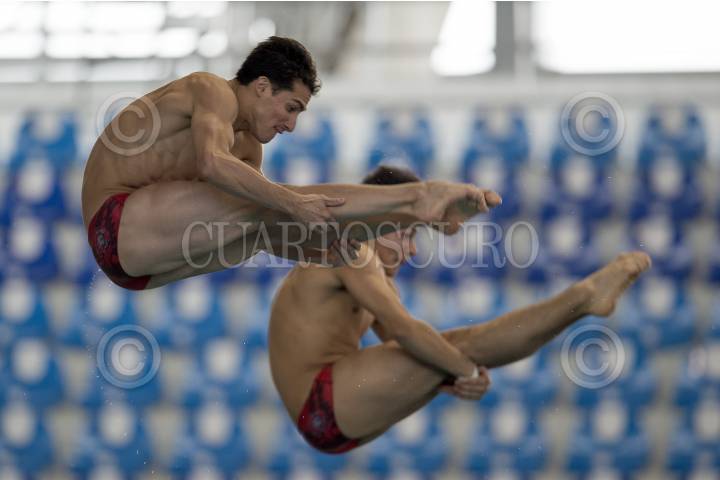 MEXICO, D.F., 29SEPTIEMBRE2014.- Romel Pacheco y Rodrigo López se coronaron con la medalla de Oro y Alejandra Estrella y Gabriela Agundes con la medalla de plata en la final de 10 metros en la final del Festival Deportivo Panamericano realizado en la alberca olimpica Francisco Marquez. FOTO: INDEPORTEDF/ CUARTOSCURO.COM