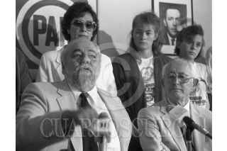 MEXICO, D.F., 30SEPTIEMBRE2014.-El panista Manuel de Jesús Clouthier, también conocido como Maquio, falleció el pasado 1 de octubre de 1989 en un accidente automovilístico junto con el diputado Javier Calvo Manrique., según la versión oficial, aunque las circunstancias alrededor del accidente fueron poco claras. Sus restos descansan en el panteón Jardines de Humaya, en Culiacán Sinaloa. Clouthier fue un polìtico y empresario mexicano que asumió la candidatura por parte del PAN en los polémicos comicios presidenciales de 1988, de los que resultara electo Carlos Salinas de Gortari. En imagen de archivo, el entonces candidato durante una conferencia de prensa en el hotel Casa Blanca, el 20 de octubre de 1987. FOTO: PEDRO VALTIERRA /ARCHIVO /CUARTOSCURO.COM