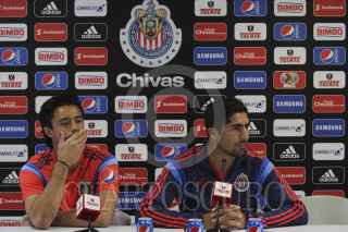 ZAPOPAN, JALISCO, 30SEPTIEMBRE2014.- En las instalaciones de Verde Valle el defensor de chivas Jair Pereira y el guardameta Antonio Rodríguez durante la conferencia de prensa que sostuvieron por la mañana. FOTO: FERNANDO CARRANZA GARCÍA /CUARTOSCURO.COM