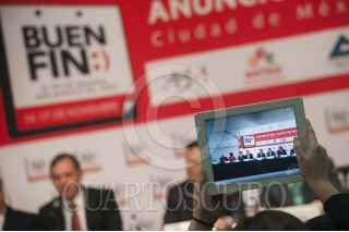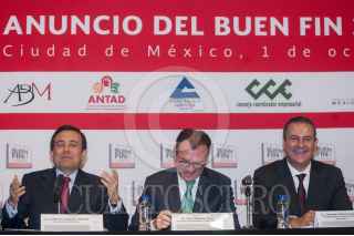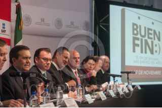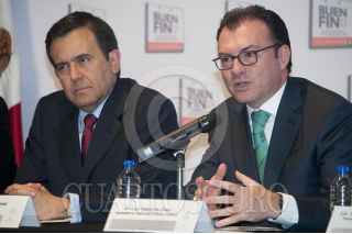 MÉXICO, D.F., 01OCTUBRE2014.- Ildefonso Guajardo Villarreal, secretario de Economía y Luis Videgaray, Secretario de Hacienda, durante la conferencia para anunciar el Buen Fin 2014 que se realizará del 14 al 17 de noviembre. FOTO: DIEGO SIMÓN SÁNCHEZ /CUARTOSCURO.COM