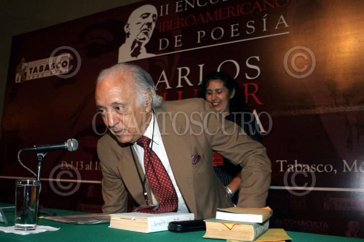 VILLAHERMOSA, TABASCO, 13FEBRERO2006.- El gobernador Manuel Andrade Díaz en compañia del Secretario de Cultura Recreación y Deporte; Máximo Evia Ramírez (i), inauguraron el II Encuentro Iberoameicano de Poesía "Carlos Pellicer Cámara". FOTO: Marco Polo Guzman/CUARTOSCURO.COM
