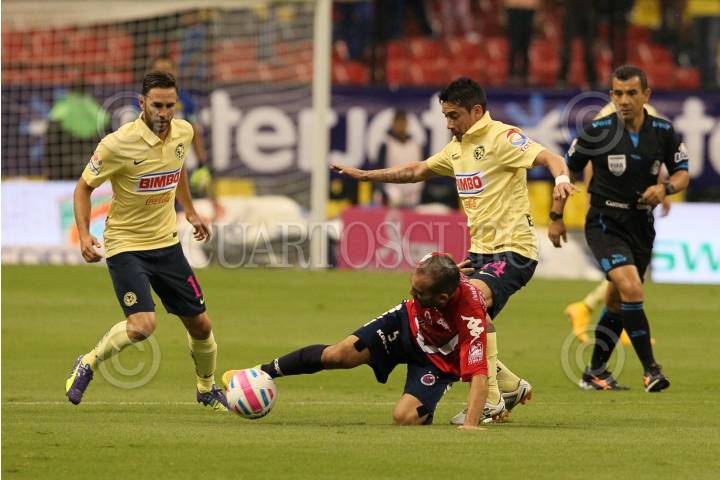 MÉXICO, D.F., 01OCTUBRE2014.- La Águilas del América se impone sin contratiempos al Veracruz con marcador de 2-0 gracias a los goles de Michael Arroyo y Paul Aguilar en e Estadio Azteca. Con este resultado las Águilas se mantienen en la cima del Apertura 2014 con 26 unidades, mientras que Veracruz se queda con 11 puntos en el puesto 13. FOTO: MOISÉS PABLO /CUARTOSCURO.COM