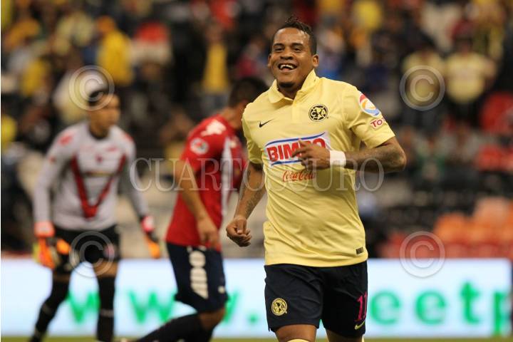 MÉXICO, D.F., 01OCTUBRE2014.- La Águilas del América se impone sin contratiempos al Veracruz con marcador de 2-0 gracias a los goles de Michael Arroyo y Paul Aguilar en e Estadio Azteca. Con este resultado las Águilas se mantienen en la cima del Apertura 2014 con 26 unidades, mientras que Veracruz se queda con 11 puntos en el puesto 13. FOTO: MOISÉS PABLO /CUARTOSCURO.COM