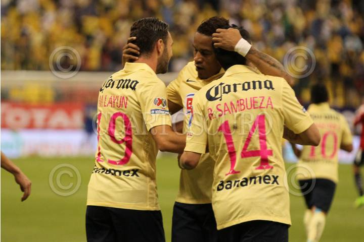 MÉXICO, D.F., 01OCTUBRE2014.- La Águilas del América se impone sin contratiempos al Veracruz con marcador de 2-0 gracias a los goles de Michael Arroyo y Paul Aguilar en e Estadio Azteca. Con este resultado las Águilas se mantienen en la cima del Apertura 2014 con 26 unidades, mientras que Veracruz se queda con 11 puntos en el puesto 13. FOTO: MOISÉS PABLO /CUARTOSCURO.COM
