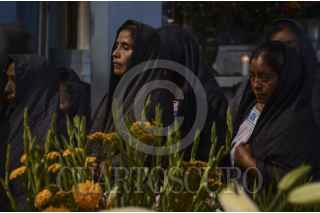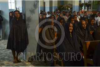 ATZACUALOYA, GUERRERO, 02OCTUBRE2014.- En la comunidad de Atzacualoya cada 29 de septiembre inicia la Fiesta de San Miguel y del Mayantle, una vieja tradición pagana-religiosa para recibir primeras cosechas de maíz, frijol y calabaza en la montaña. Los campesinos agradecen a San Miguel, imagen de la iglesia católica al que le ofrendan elotes y calabazas. Por otro lado, realizan la danza mayantle, personaje místico de culturas ancestrales al que le ofrendan elotes para “que se termine el hambre”. En la comunidad de Tlanipantla, los pobladores se organizan en grupos para acudir a recolectar elotes en las casas del pueblo. Un campesino viste con nahuas y máscara para asimilar al mayantle, mientras que otros se disfrazan para asimilar a sus "perros” y con cuetes de pólvora que truena al aire van a anunciando su paso. FOTO: BERNANDINO HERNÁNDEZ /CUARTOSCURO.COM