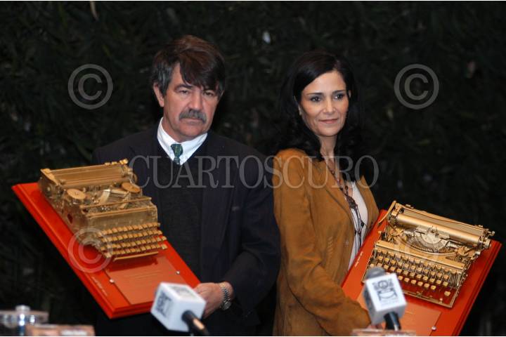 MEXICO D.F. 14FEBRERO2006.- La periodista Lydia Cacho, recibio el premio ¨Fabricio Ojeda al valor informativo¨ por la publicación del libro¨Los demonios del Edén¨. El reconocimiento lo otorga la coordinadora venezolana en Cuba, agrupación que es integrada por artistas, intelectuales y comunicadores. FOTO: Germán Romero/CUARTOSCURO.COM