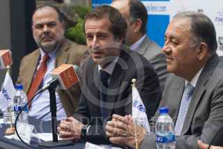 MÉXICO, D.F., 02OCTUBRE2014.- Javier Braun, director de Operaciones de Grupo Pegaso, y Javier Aluni, secretario de Fomento Turístico del Estado de Guerrero, encabezaron la conferencia de prensa donde presentaron el Abierto Mexicano de Tenis, que se celebrará el próximo año en Acapulco, donde participará la tenista María Sharapova. FOTO: ISAAC ESQUIVEL /CUARTOSCURO.COM