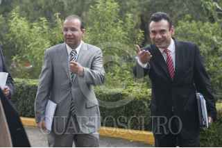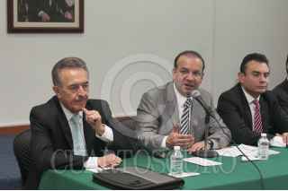 MÉXICO, D.F., 02OCTUBRE2014.- Alfonso Navarrete Prida, secretario de Trabajo y Rafael Avante Juarez, subsecretario de Trabajo, ofrecieron una conferencia de prensa para informar sobre las acciones que ha realizado la comisión de trabajo del Río Sonora para revertir los daños ocasionados por el derrame de miles de litros de ácido sulfúrico a las aguas del río Sonora y Bacanuchi de la mina de Cananea, donde Grupo México es dueño del yacimiento. FOTO: DIEGO SIMON SANCHEZ /CUARTOSCURO.COM