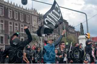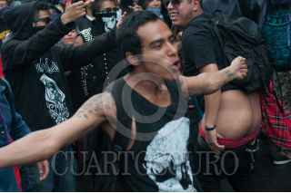 MÉXICO, D.F., 02OCTUBRE2014.- Jovenes autodenominados anarquitas durante la marcha para conmemorar la matanza de Tlatelolco que partió de la plaza de las tres culturas de Tlatelolco hasta el zócalo capitalino. FOTO: DIEGO SIMÓN SÁNCHEZ /CUARTOSCO.COM