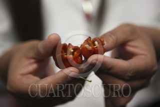 MORELIA, MICHOACÁN, 02OCTUBRE2014.-Autoridades federales y estatales acudieron a inaugurar la 11ª. Convención Mundial del Chile, que se lleva a cabo en el Centro de Convenciones de esta ciudad capital. En presencia del titular de Sagarpa, Enrique Martínez y Martínez, los funcionarios dieron el banderazo inicial de los trabajos, donde participan productores de chile de la entidad, del país y de distintas partes del mundo. FOTO: ALAN ORTEGA /CUARTOSCURO.COM