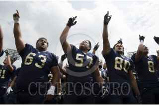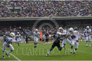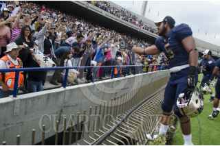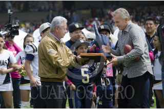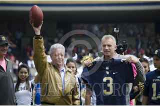 MÉXICO, D.F., 04OCTUBRE2014.- El equipo de fútbol americano Pumas CU venció a Auténticos Tigres en tiempos extra de la liga mayor de la ONEFA en el Estadio Olímpico Universitario. En el medio tiempo se homenajeo al ex-jugador de la NFL Joe Montana. FOTO: MARÍA JOSÉ MARTÍNEZ /CUARTOSCURO.COM