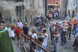 CUERNAVACA, MORELOS, 04OCTUBRE2014.- Artesanos de diferentes estados de la república participan en el II Encuentro Nacional de Cerería Tradicional. En el Museo de la Ciudad se realizó la elaboración de las piezas y posteriormente la misa y bendición en la Catedral previo a la procesión de candelas en la que participan 14 estados y 100 maestros cereros. FOTO: PATRICIA MORALES /CUARTOSCURO.COM