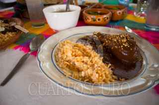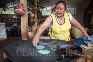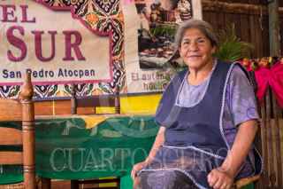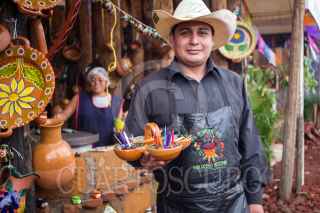 MEXICO, D.F., 04OCTUBRE2014.- En el aire se respira el olor a chiles asados, nueces, semillas y especias, mientras las mujeres y los hombres ofrecen en pequeñas cucharas de madera pruebas de su más secreta y cuidada receta del tradicional mole de San Pedro a los visitantes de la XXXVIII Feria del Mole de San Pedro Atocpan, la cual fue inaugurada el día de hoy. La venta del mole en este pueblo de la delegación Milpa Alta es la principal actividad económica, sosteniendo al 80 por ciento de la población. La elaboración de un mole artesanal toma varios días, a lo largo de los cuales se irán incorporando los más de 30 o 40 ingredientes necesarios para conseguir un sabor inigualable. El precio de un kilo de mole va de los $70 hasta los $250, dependiendo de los ingredientes y la compleijdad para prepararlo. La feria podrá visitarse hasta el 26 de Octubre. FOTO: DAVID POLO /CUARTOSCURO.COM